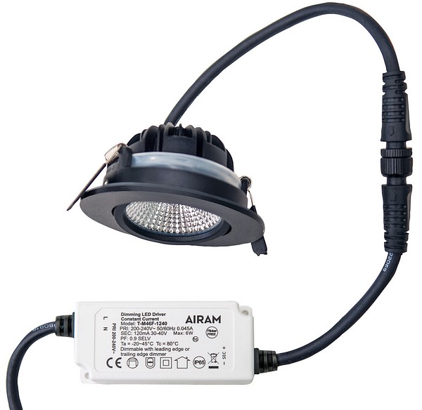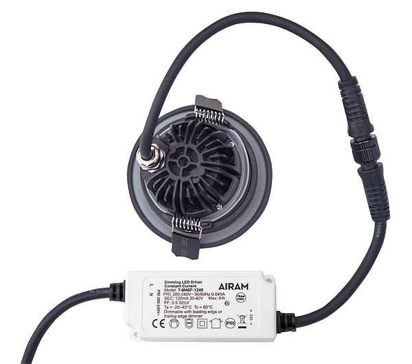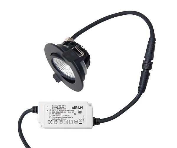 Compact Outdoor Downlight 5W 4000K 500lm Beam angle Medium beam 20-40°; Dim phase cut-off; Dim phase cut-on; IP65; IK03; Protection cl. II; L70B50 100000h; LED not exchangeable; CRI>80; SDCM3; Ending; 2x0.75mm²; Housing al; Colour bk; Cover Plastic, transparent; C16 max. 200