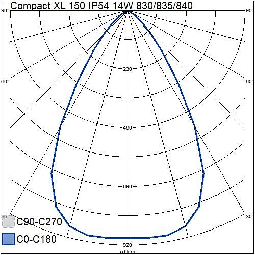 Compact XL Alasvalo 8W-14W 3000/3500/4000K 1150-1800lm Keskileveä säde 20-40°; Ei him; IP54; IK03; SL II; L70B50 100000h; CRI>80; SDCM3; Soveltuu läpijohdotukseen; 3x2.5mm²; Kotelo al; Väri val; Suojus Läpinäkyvä muovi; C16 maks. 45