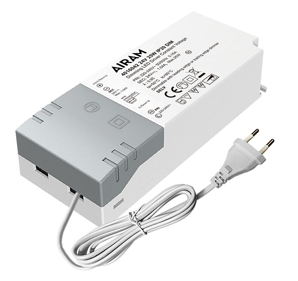 25W 24V IP20 Himmennettävä virtalähde 24V Led-nauhoille käytettäväksi sisätiloissa. Yhteensopiva led-nauhoille: Apus 24V, Apus CSP 24V, Norma 24V, Norma CSP 24V.